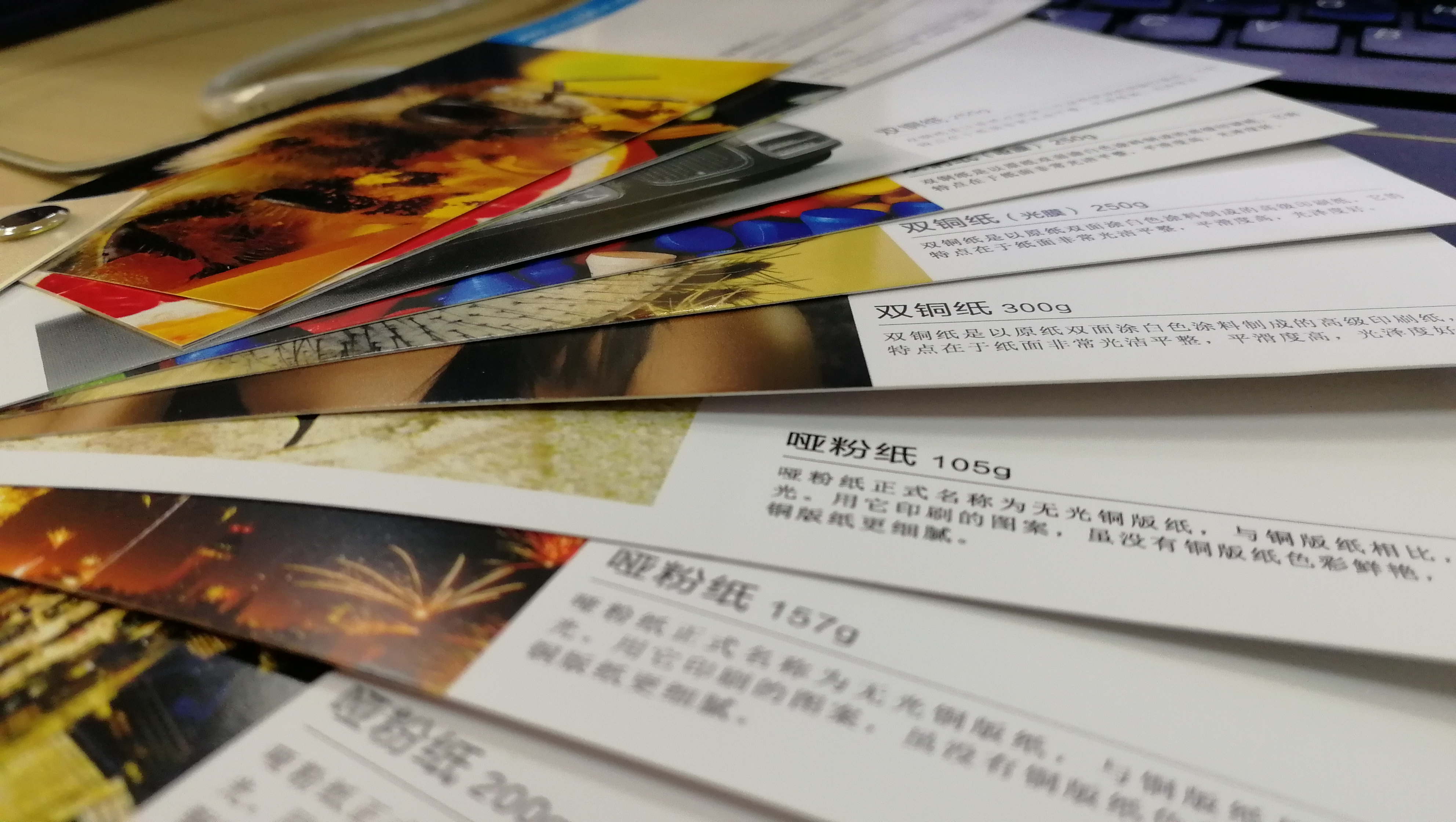 1、首先要知道畫冊印刷時主要用哪些紙,并且能用肉眼辨別得出來。主要用到的有啞粉紙、雙銅紙、雙膠紙。